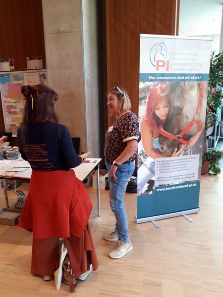 An der Konferenz Horses 4 Humans nahm auch der Berufsverband mit einem Informationsstand und einem Vortrag zur Berufsverbands-Arbeit durch den Vorstand teil. Der Zulauf am Informationsstand war an allen drei Tagen hoch, das Interesse an Mitgliedschaften, Infos zu Zertifizierungen, der Regionalgruppenarbeit oder einfach einem fachlichen Austausch groß. Am Abend des 19. Oktober fand außerdem die diesjährige Mitgliederversammlung des Berufsverbands PI statt. In diesem Rahmen wurden auch die Vorstandswahlen durchgeführt. Dr. Annette Gomolla (2. Vorsitzende), Elke Jaroschek, Ute Slojewski (1. Vorsitzende), Stefanie Ebert und Leni Weber (v.l.n.r.) sowie Dr. Raik Hallensleben und Julia Schmidt bilden für die kommenden zwei Jahre erneut den Vorstand des Berufsverbandes. Wir bedanken uns ausgesprochen bei unseren Mitgliedern für das entgegengebrachte Vertrauen!